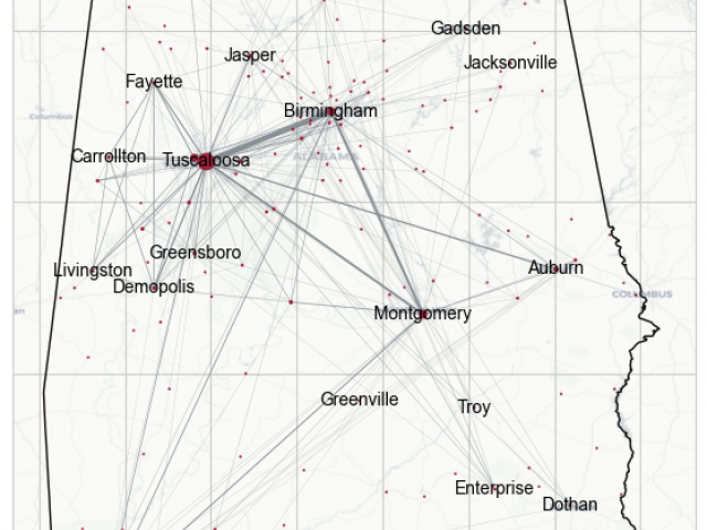 This study investigates how the relationships between cities are represented in local news by analyzing co-mentions of cities in 31,004 news articles from Alabama. Using a large language model, we extract geographic references and construct co-mention networks that reflect both spatial proximity and symbolic connections. To interpret these links, we develop a classification framework of relationships between cities, including common impacts and sequential dynamics. Our preliminary analysis reveals that different news categories produce distinct patterns of spatial association. This approach offers a novel methodology and a new lens for understanding media-driven spatial imaginaries, contributing to research on information geographies and shedding light on the relational dimensions of local information.